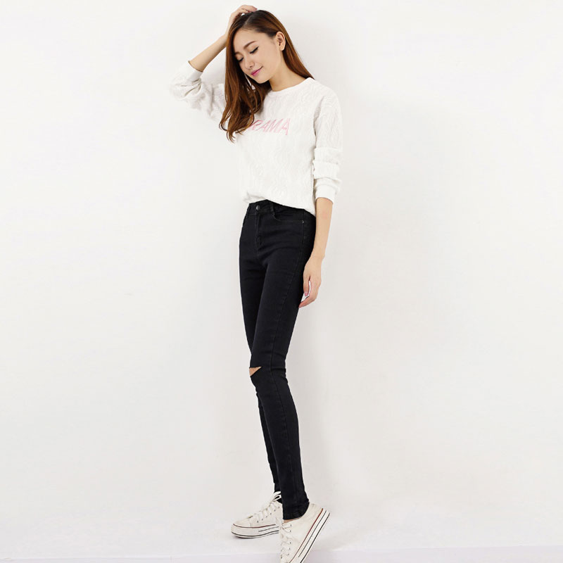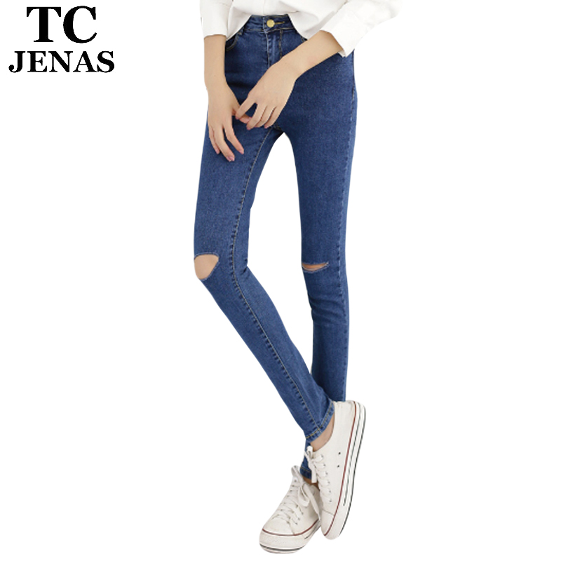 > Damen Bekleidung > Hosen > tc heißen Jeans Hosen Damen fallen die Jeans Blau Schwarz Dünnen loch Riss BleiStift Strecken hohe Taille und Grösse