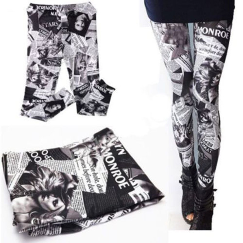 > Damen Bekleidung > Hosen > neue Damen sexy Gamaschen Hose digita Print schreiben Zeitung Leggings Schwarze Milch für Damen gratis Versand