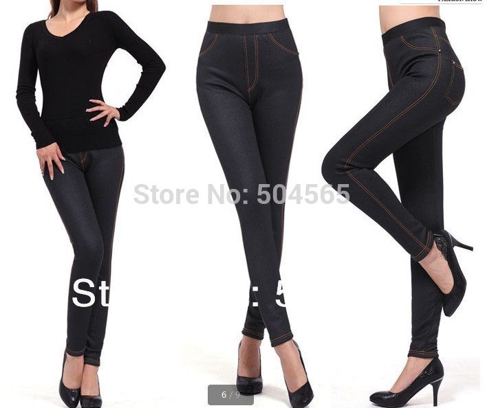 > Damen Bekleidung > Hosen > Winter in die Jeans neue Damen Faux Denim Hosen solide warm zunehmen schröpft BleiStift Hosen footless Leggings plus