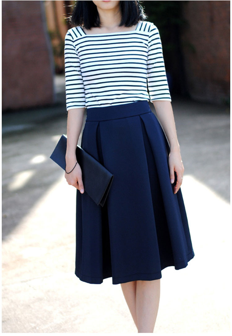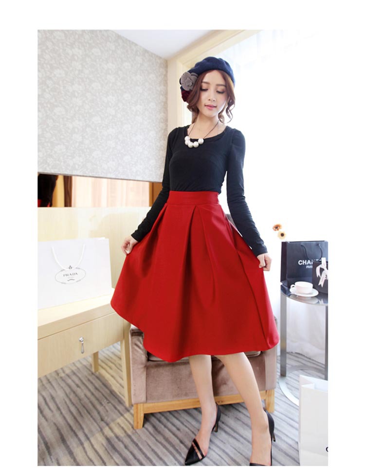 > Damen Bekleidung > Hosen > plus Size Herbst Winter ausgestellte Rock gefalteten Midi Rock im retro Stil mit hoher Taille elegante Vintage