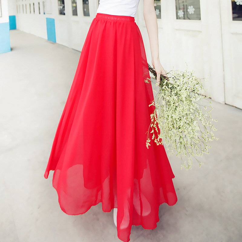 > Damen Bekleidung > Hosen > Grosshandel Damen Chiffon lange Röcke Süssigkeiten Farbe gefalteten Maxi Damen Röcke Frühjahr Sommer Röcke m l xl 17