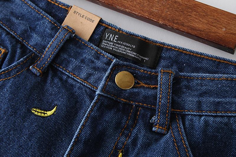 > Damen Bekleidung > Hosen > Mode Damen Koreanischen Sommer Banane Blume Stickereien Baumwolle Curling plus Size casual weibliche Taille Denim