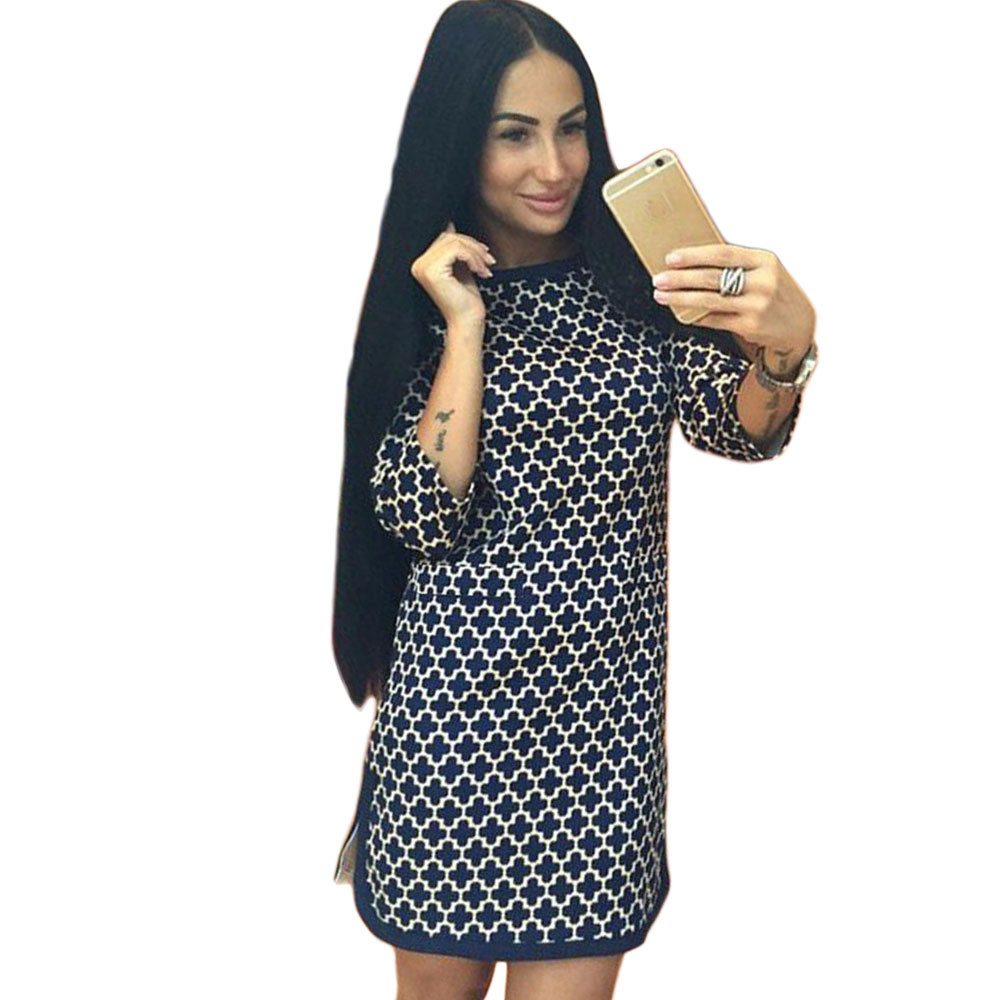 > Damen Bekleidung > Kleider > neuer Stil im Sommer sexy Kleid Damen karierten Print direkt slim casual viertel Ärmel Kleid Vestido Vintage Floral lon