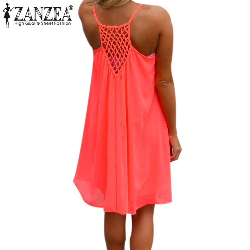 > Damen Bekleidung > Kleider > Mode Damen Sommerkleid Ärmellose wieder loch solide Strand Minikleid Locker lässig Vestidos plus Size 3