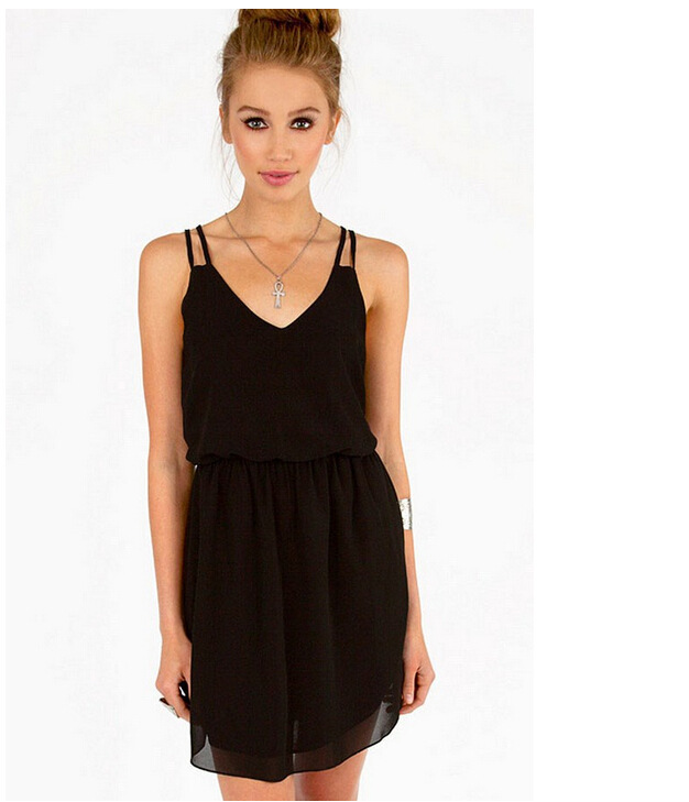 > Damen Bekleidung > Kleider > neue Damen Sommerkleid Schwarz Rot double Chiffon Kleid mit sexy v Hals slim tailliertes Vestidos Summer Style