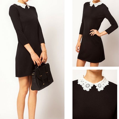 > Damen Bekleidung > Kleider > sexy Lady Damen Spitzen Kragen Kleid Schwarz Mini Kleid der xl free Shipping f3052