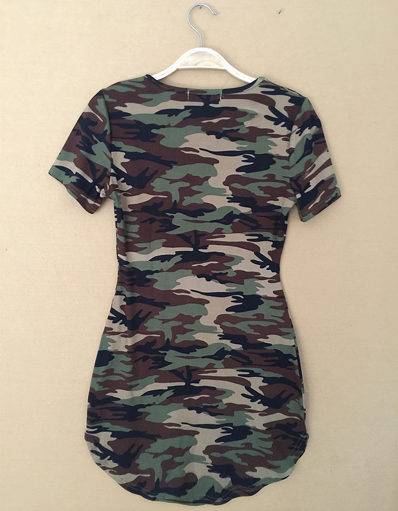 > Damen Bekleidung > Kleider > neue Mode Damen Sommerkleid kurze Ärmel sexy Mini Kleidern Damen Grünen Camouflage Print plus Size Frau Vestidos