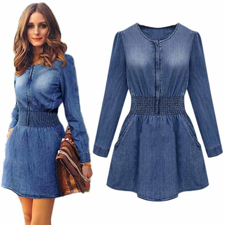 > Damen Bekleidung > Kleider > new Vintage Frühjahr Damen mit langen Ärmeln slim lässig Jeans Partei Mini Kleid