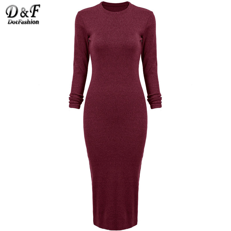 > Damen Bekleidung > Kleider > Damen mit langen Ärmel dünn um den Hals wieder getrennte schlanke Stift Kleider beScheidenen Formellen elegante Baumwoll