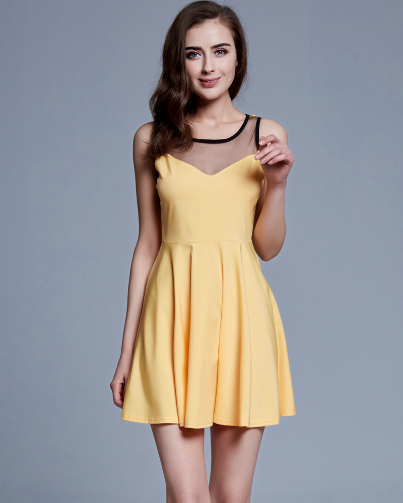 > Damen Bekleidung > Kleider > kurze Blaue Damen Sommerkleid o Hals Ärmellose Mesh Patchwork Schwarze Partykleider sexy gefalteten Kleid Hochzeit