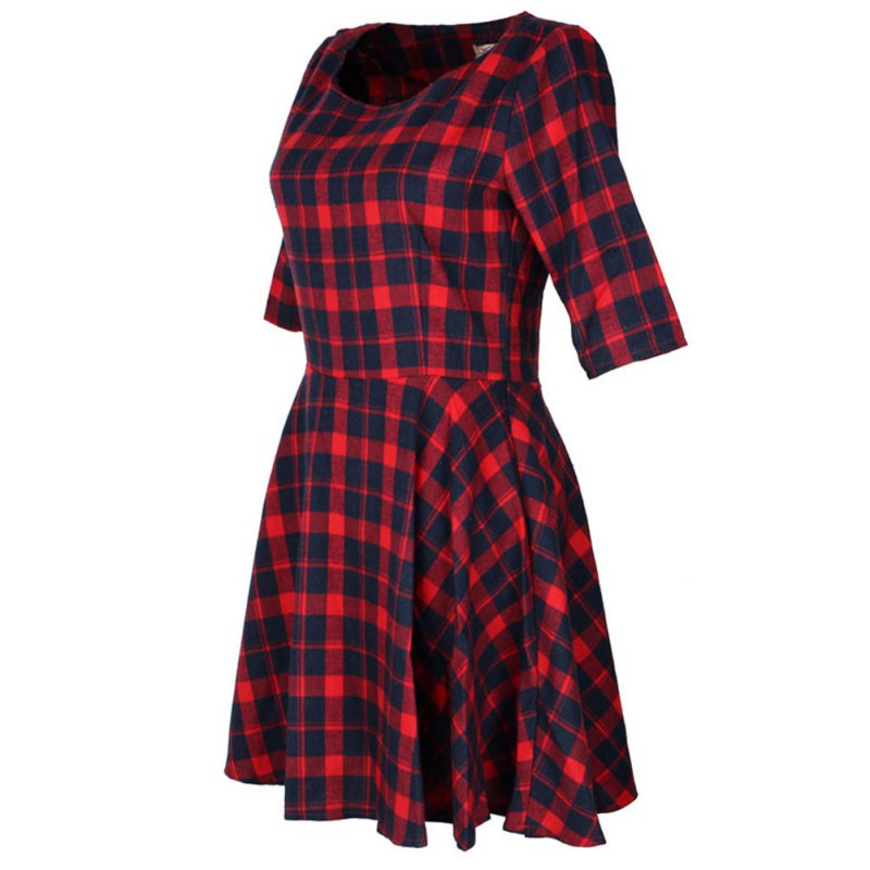 > Damen Bekleidung > Kleider > heiße Damen Rote karierten Kleid um den Hals im Sommer die Hälfte Ärmel Mini Kleider Mode y2