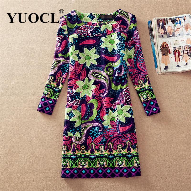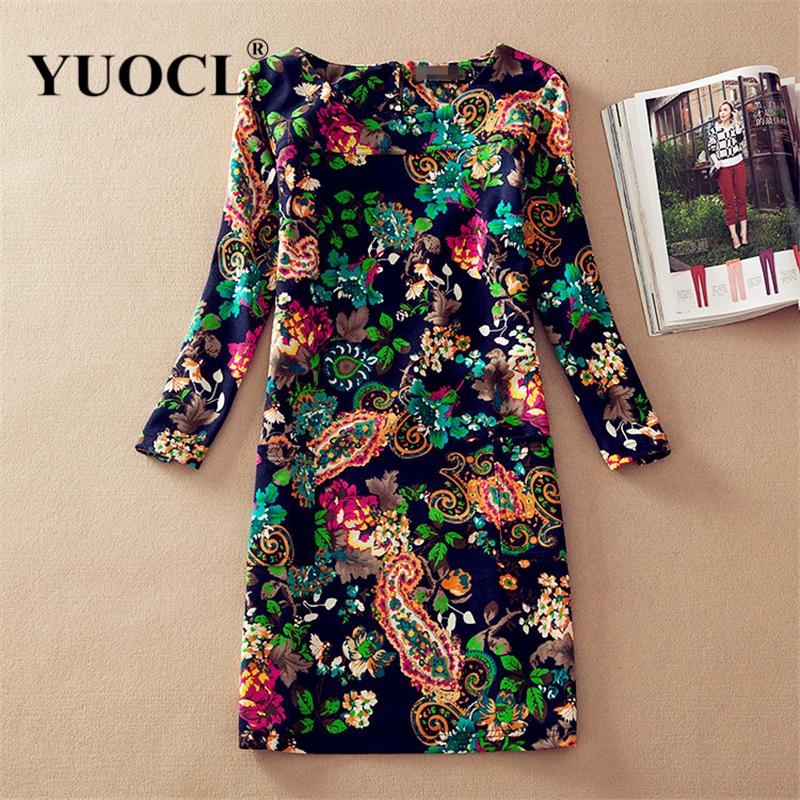 > Damen Bekleidung > Kleider > Damen Winter Dünnen Kleider 3 4 Ärmel Vintage Blumenmustern Damen Kleid Herbst weibliche casual büro