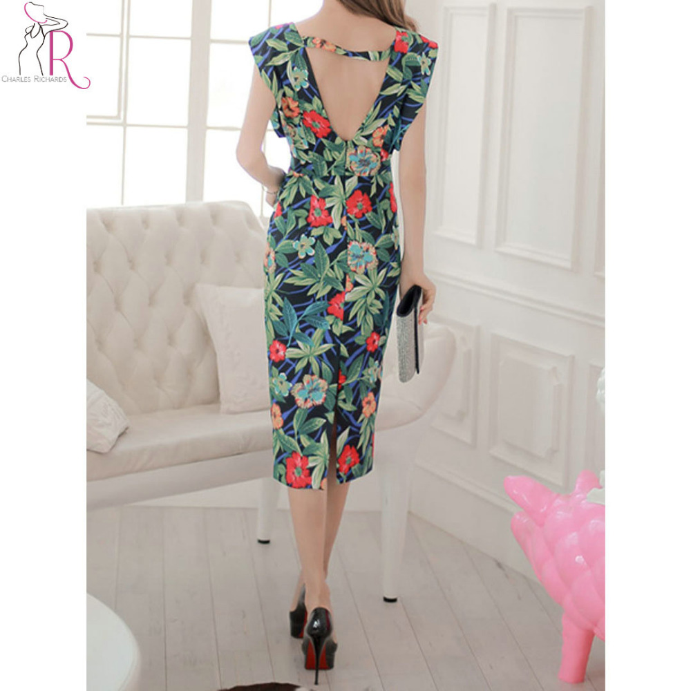 > Damen Bekleidung > Kleider > Damen Ärmellose schnitt rückenfrei Vintage Florale Grafik Fingerabdrücke Midi Stift Partei lässig Bodycon Kleid