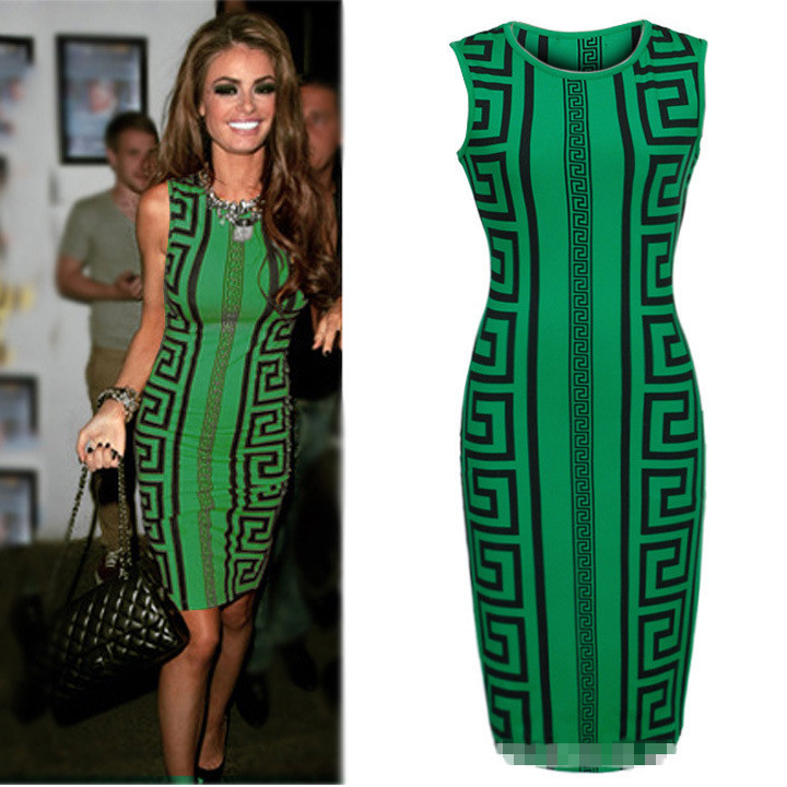 > Damen Bekleidung > Kleider > Sommer Damen Kleid plus Size Damen Kleidung sexy Club Verband Kleid grün Geometrischen Aufdruck elegante Bodycon