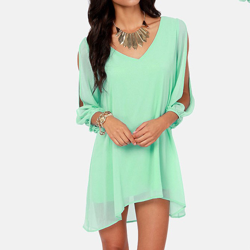 > Damen Bekleidung > Kleider > neue Sommer Chiffon kurzen Kleid Damen Locker sexy v Hals auch eine linie casual Mini Shirt Kleid mit Weissen stränden