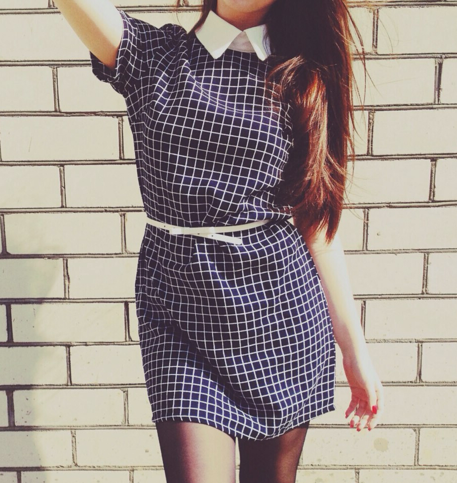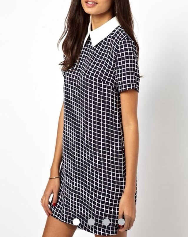 > Damen Bekleidung > Kleider > Damen im karierten Kleider ab Kragen Vestidos kurze Ärmel direkt Weiss Collor Arbeiten Damen Kleid tragen qz7
