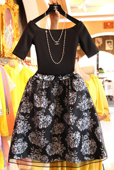 > Damen Bekleidung > Kleider > neue Mode Vintage elegante zwei weibliche Kleid Sommer Twinset Damen Organza BallKleidern Flora Muster Vestidos