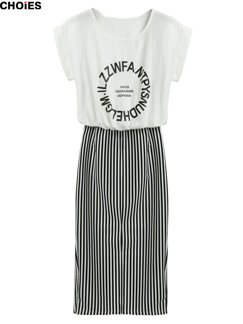 > Damen Bekleidung > Kleider > Damen 2 in 1 Stück Drucken Gestreifte Bluse Kleid Midi lange schreiben kurze Ärmel Bodycon Kleid Sommer neue aktien