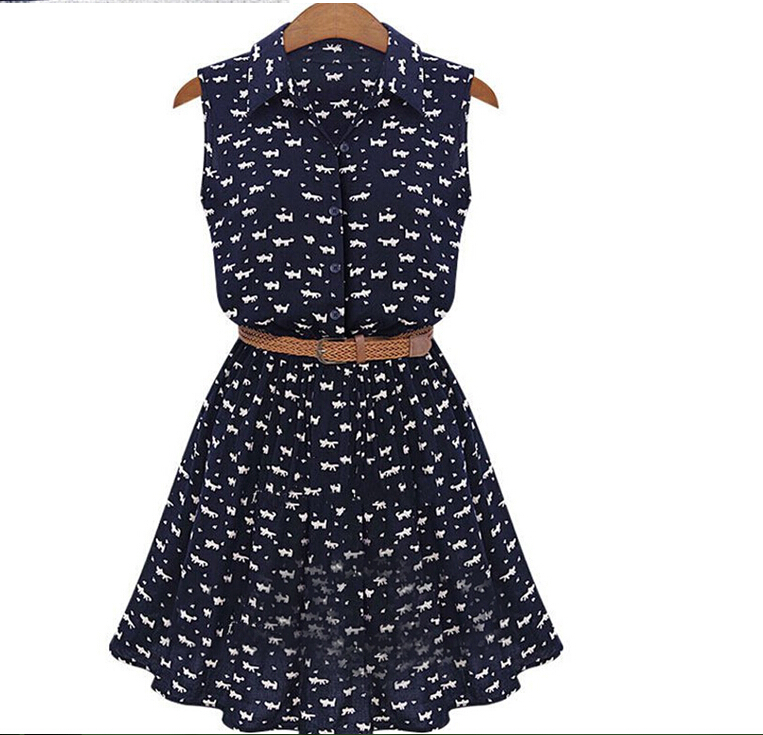 > Damen Bekleidung > Kleider > neue Damen Katze Fussabdrücke Muster Zeigen Dünnen Hemd Kleid mit gürtel lässig aus Chiffon kurze Print Kleid