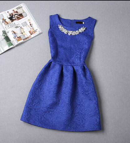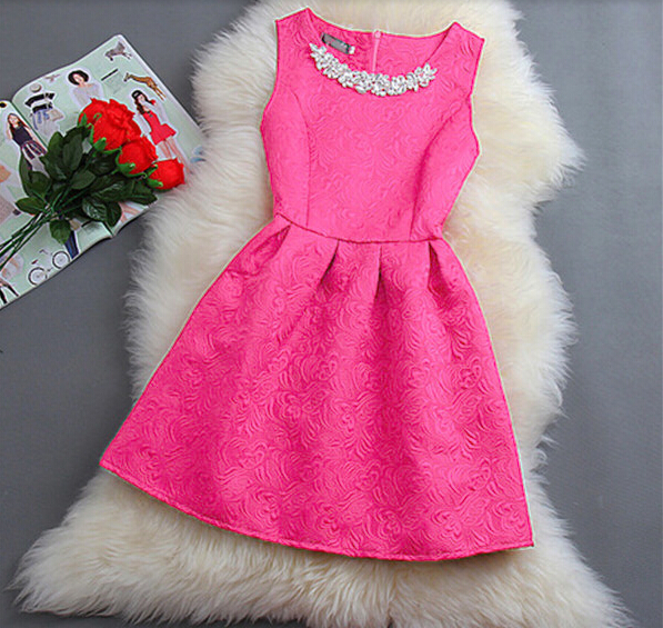 > Damen Bekleidung > Kleider > Grösse ist 2xl neue Frühjahr Sommer Herbst Damen o Hals Ärmellose Einfarbig appliques Ballkleid Basis Kleider Vestido
