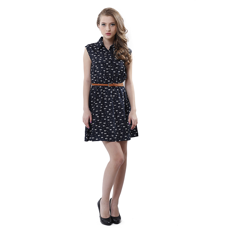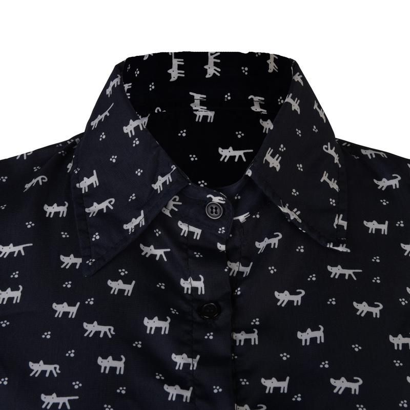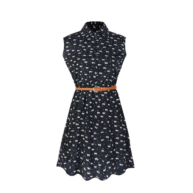 > Damen Bekleidung > Kleider > Sommer Mode neue Damen Kleid Katze Fussabdrücke Muster Zeigen Dünnen Hemd Kleid lässig Kleider mit gürtel