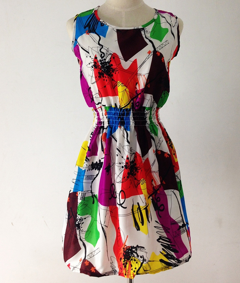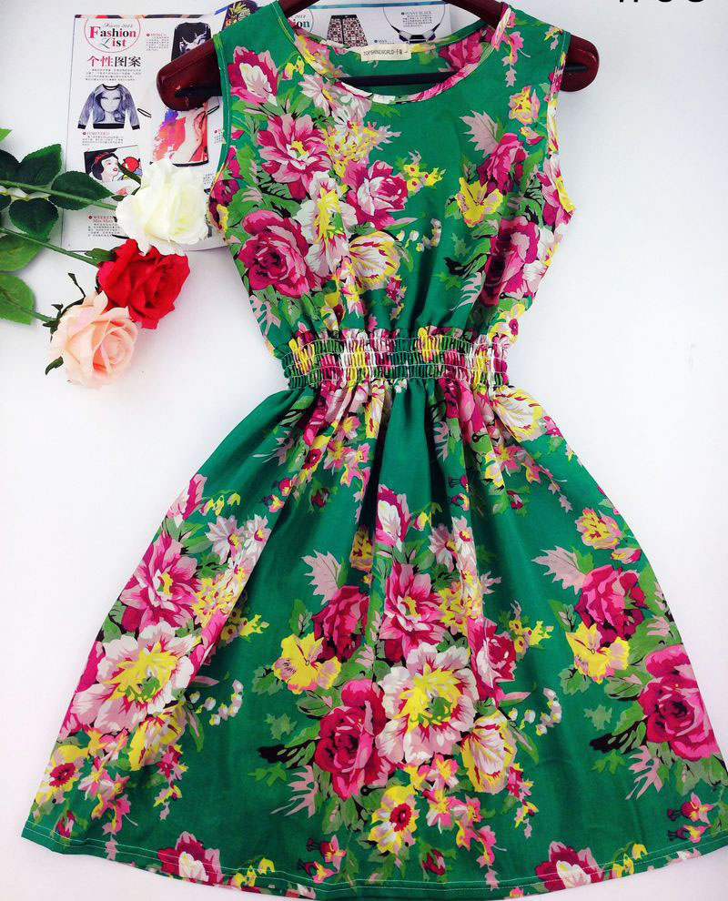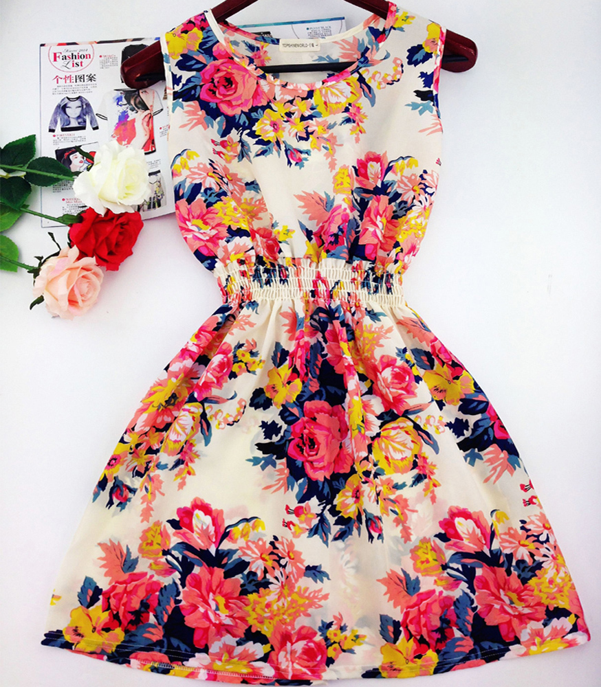 > Damen Bekleidung > Kleider > Sommer im Herbst neue Koreanische Damen Ärmellose Weste im Böhmischen Floral Leopard Strand Chiffon Kleid Vestidos