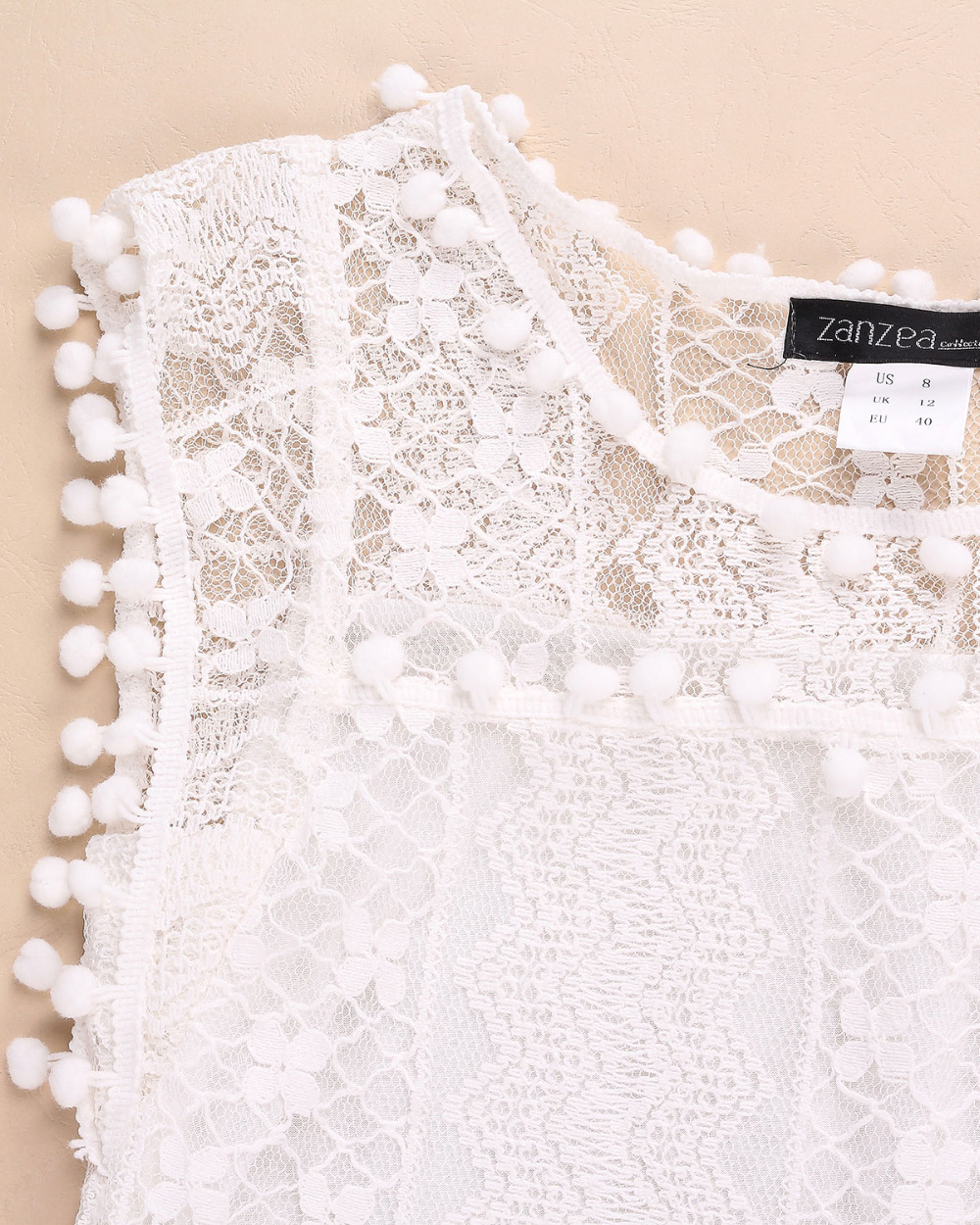 > Damen Bekleidung > Kleider > sexy Damen Ärmellose Kleid lässig am kurzen Kleid Tassel Weisse Mini Spitzen Kleid Vestidos plus 10
