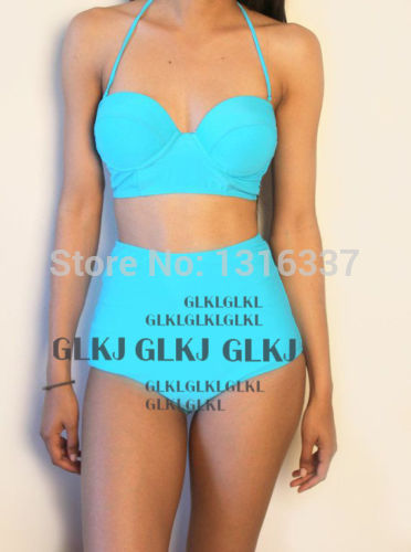 > Damen Bekleidung > Bademode > neue Mode heiße Lady Damen Vintage high tailliertes Bikini Set Neon Farbe Badehosen Badeanzug Versandkosten