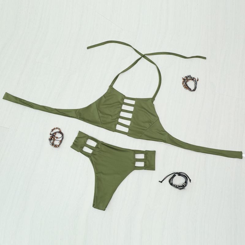 > Damen Bekleidung > Bademode > sexy Schulterfreien Top Bikini heiße high Hals legt Verband hohl Badehosen retro Halter Setzte olive amy Grüner