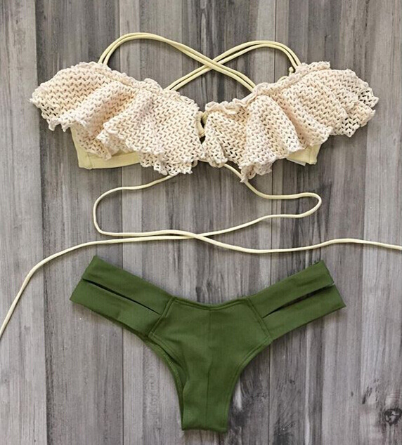 > Damen Bekleidung > Bademode > Bikini sexy Top und unten Badehosen gürtel Damen Bikini Rosa Badehose Häkeln einen push up de Marche
