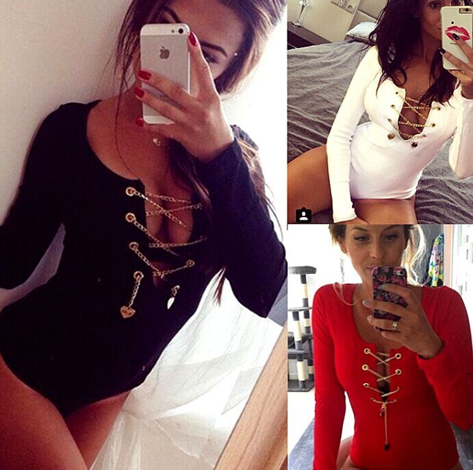 > Damen Bekleidung > Strampler > neuer Stil im Sommer Rompers Womens Overall langen Ärmel hübsche kette Design Bodysuit plus Size kurz Bodycon Spring