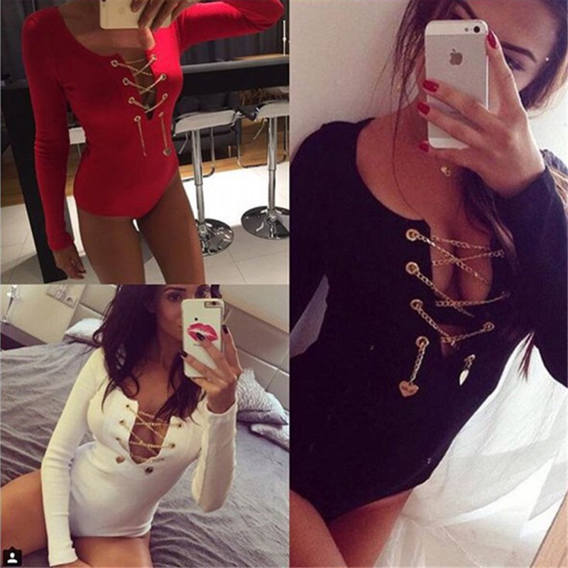 > Damen Bekleidung > Strampler > s xl sexy deepv Hals Spitzen bis Rompers Womens Overall Bodycon lange Ärmel Playsuit Metallgestaltung Bodysuit