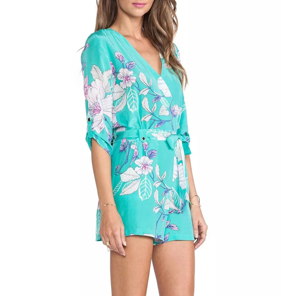 > Damen Bekleidung > Strampler > Damen elegante Blaue Blumenmustern Overalls Hose halb Ärmel Rompers mit seashes reißverschluss casual slim