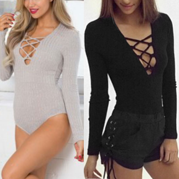 > Damen Bekleidung > Strampler > Damen Lady 1x Hochwertige wunderbar s m l sexy Bodycon kreuz Tiefen v lange Ärmel Top Bluse Tee Playsuit