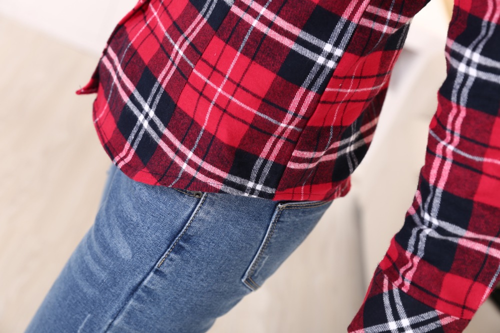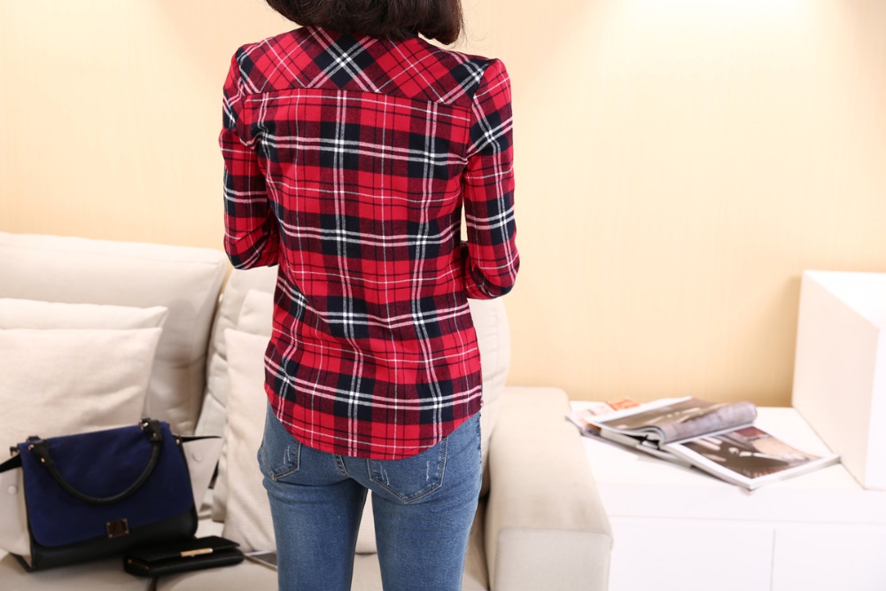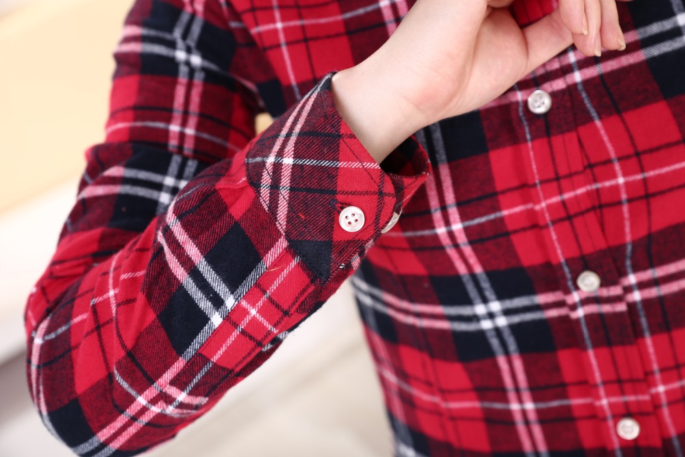 > Damen Bekleidung > Shirts > heißes Verkauf Herbst Winter Damen weibliche casual Baumwolle Revers lange Ärmel karierten Hemd Damen slim