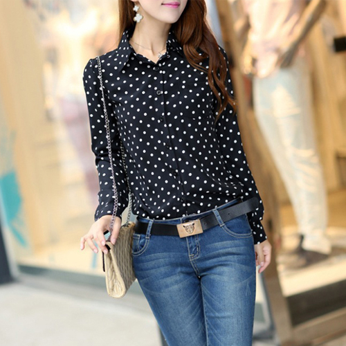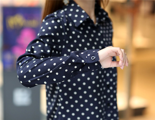 > Damen Bekleidung > Shirts > heißes Verkauf lässig Damen Blusen neue Sommer Lady Polka Dots Vintage Design lange Ärmel ab Kragen Kleidung Shirt
