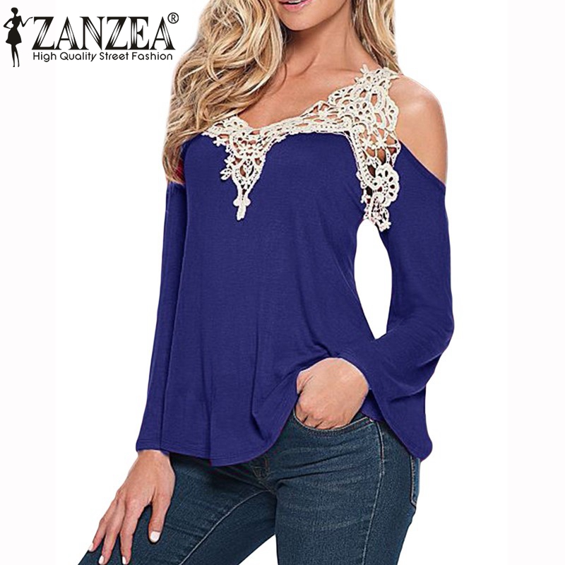 > Damen Bekleidung > Shirts > neue Herbst Damen Blusen sexy Schulter ab Bluse elegante Spitzen v Hals Hemd Damen lange Ärmel Tops plus