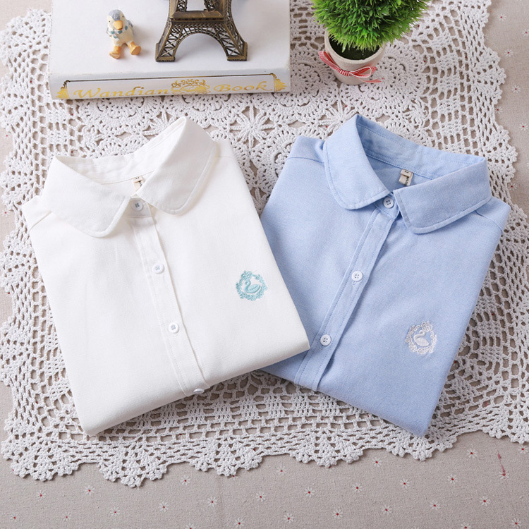 > Damen Bekleidung > Shirts > dq01 Damen Mode Frühling elegante Weisse Blusen Schwan Stickereien Vintage Longarm Shirt tragen lässig schmale