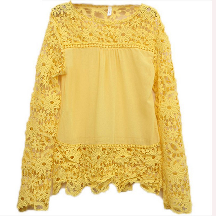 > Damen Bekleidung > Shirts > Damen chiffion Blusen lange Ärmel Spitzen Blusen Hebt Häkeln Femininas Mode plus Size