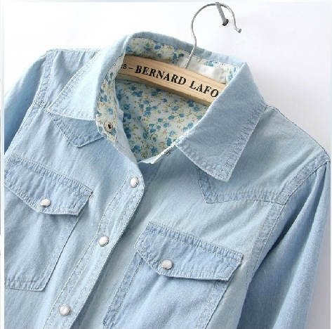 > Damen Bekleidung > Shirts > kostenLoser Versand Damen im Herbst lässige Shirts Bluse lange Ärmel Denim Jeans Hemd lässig aus Baumwolle b 20 Damen