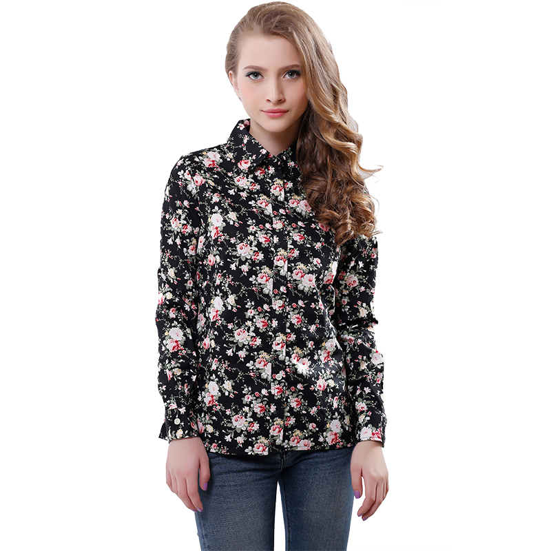 > Damen Bekleidung > Shirts > Marke Floral Blusen Baumwollhemden Damen Jahrgang ab Kragen Tops blusa Feminina Damen lange Ärmel Bluse im Herbst