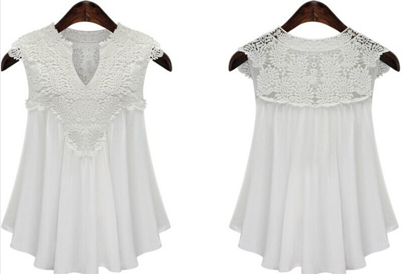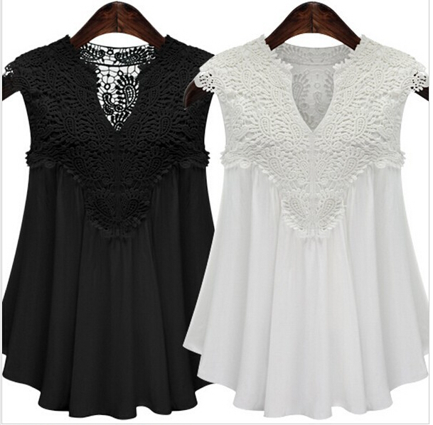 > Damen Bekleidung > Shirts > plus Size Damen Blusen sexy v Hals Chemise aus Hemd Ärmellose schafft Femme Sommer de renda Feminino 3xl