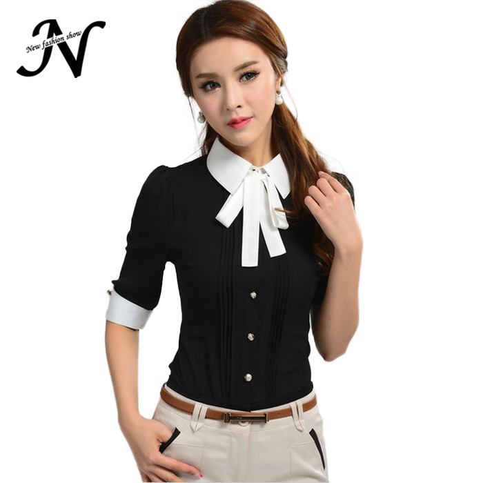- frauen Shirts Color: Blue , Pink , White , Black bogen Tie frauen Office Shirt