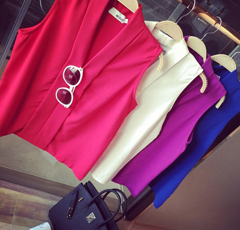 > Damen Bekleidung > Shirts > Femininas neue Mode Damen Farbenfrohe Hals Sommer Ärmellosen Hemden Chiffon Blusen süß lässig slim