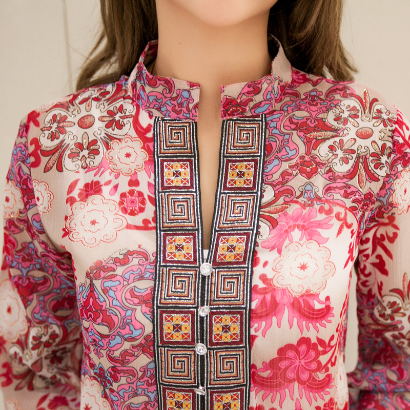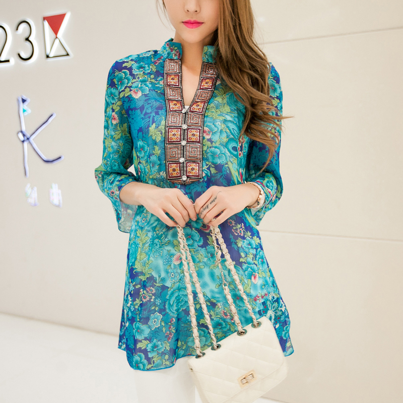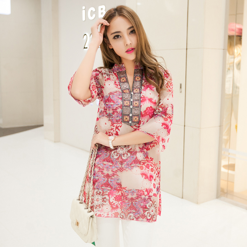 > Damen Bekleidung > Shirts > Sommer ropa Chiffon Kleid von neuen Stickereien Roten Blauen 4xl soliden plus Size Floral lässige Bluse