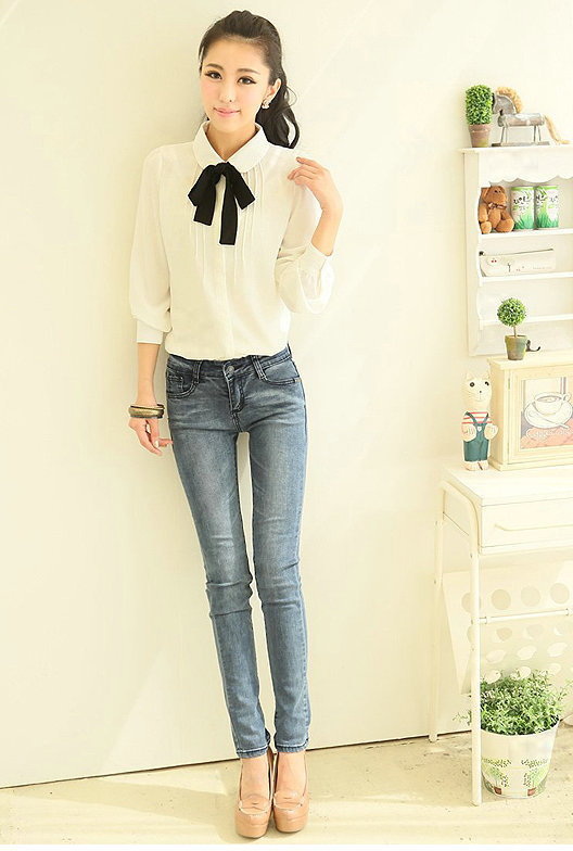 > Damen Bekleidung > Shirts > die elegante Mode fliege Weisse Blusen Chiffon Peter Pan Kragen lässig Hemd Damen Tops schule Bluse Damen plus