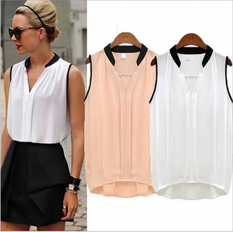 > Damen Bekleidung > Shirts > Sommer Femininas Damen casual Hals Chiffon Ärmellose Hemden Blusen für Damen im europäischen Stil