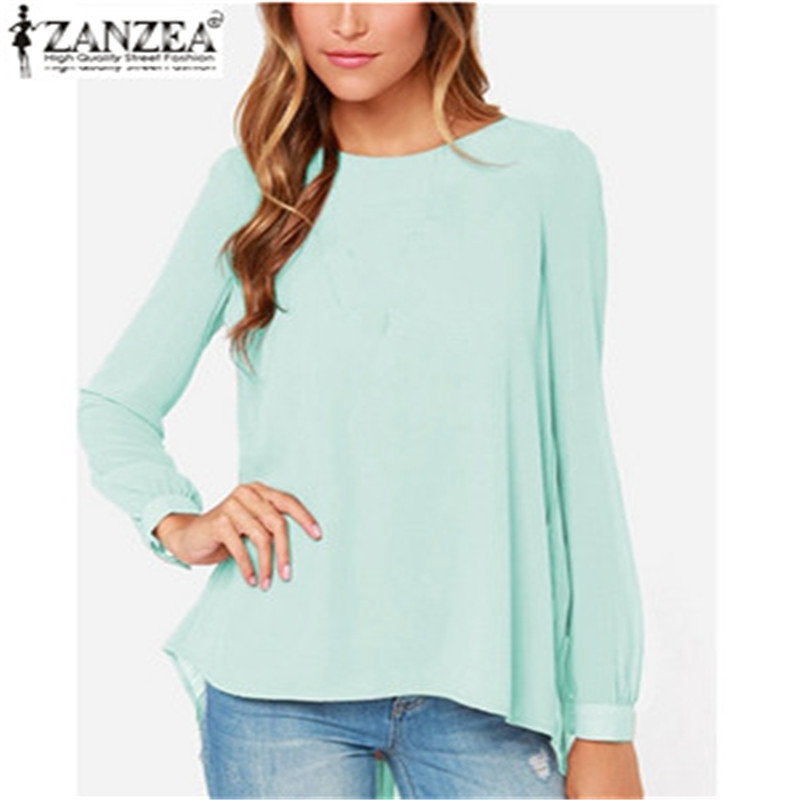 > Damen Bekleidung > Shirts > neuen Sommer Stil Damen sexy casual Locker Chiffon lange Ärmel solide Hemden Blusen und meine Grösse