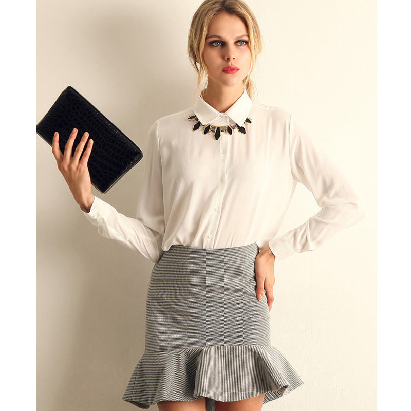 > Damen Bekleidung > Shirts > Damen Arbeiten tragen Hemd Chiffon Tops elegante Damen Formalen büro Bluse 5 Farben Femininas plus Size xxl