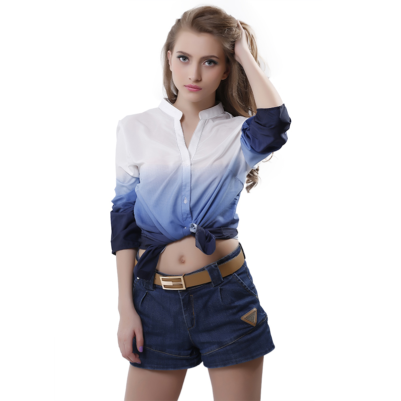 > Damen Bekleidung > Shirts > neuzugang Herbst Frühjahr Damen höchstens Mode ladies Shirt Langarm Hals Farbverlauf casual Blusen Streetwear